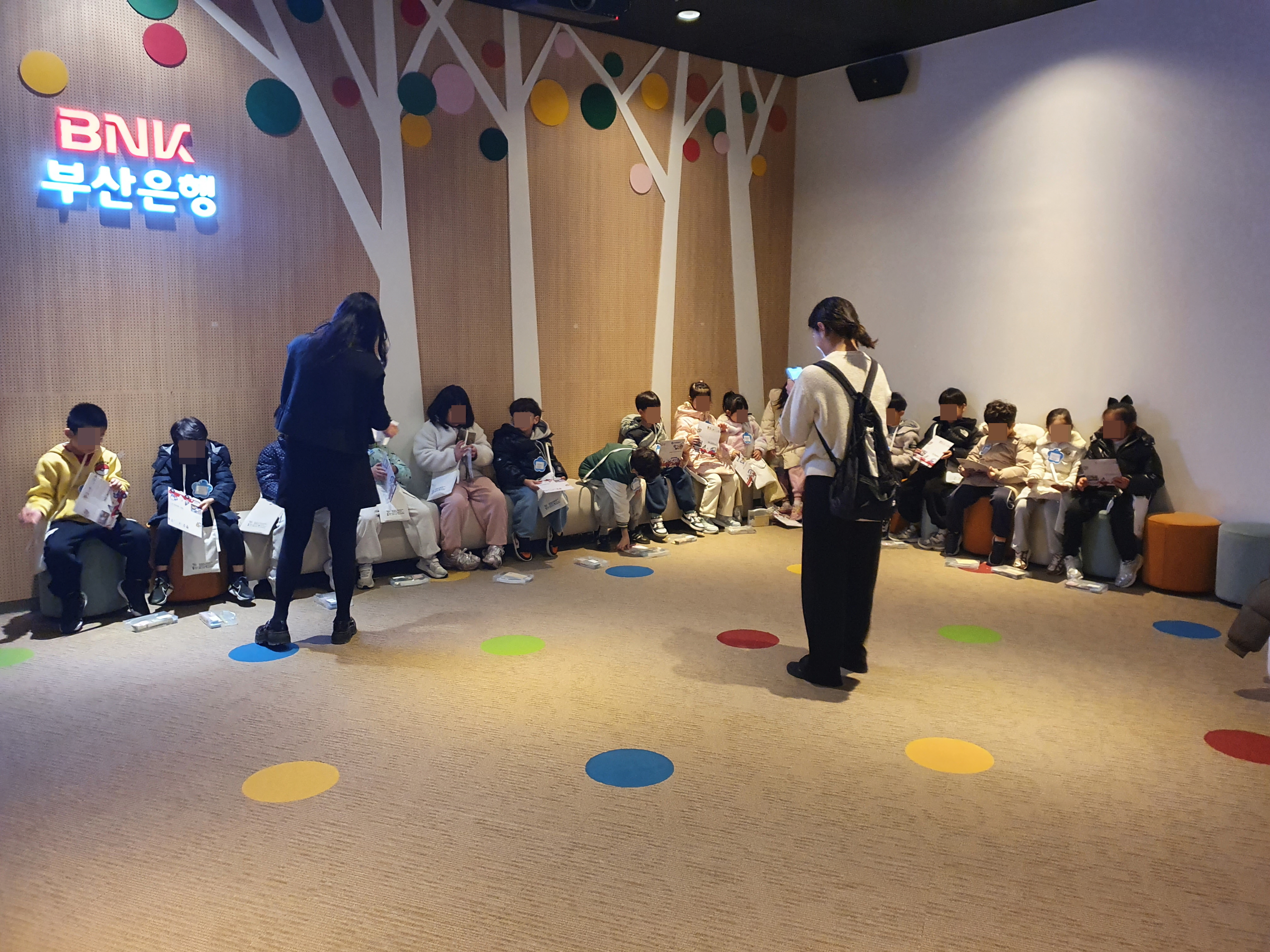 안녕하세요. 부산금융박물관로드입니다. 2025년 12월 19일(금) 프로그램에는 센텀항도유치원 학생들이 참여했습니다. [부산은행 금융역사관 투어 모습]