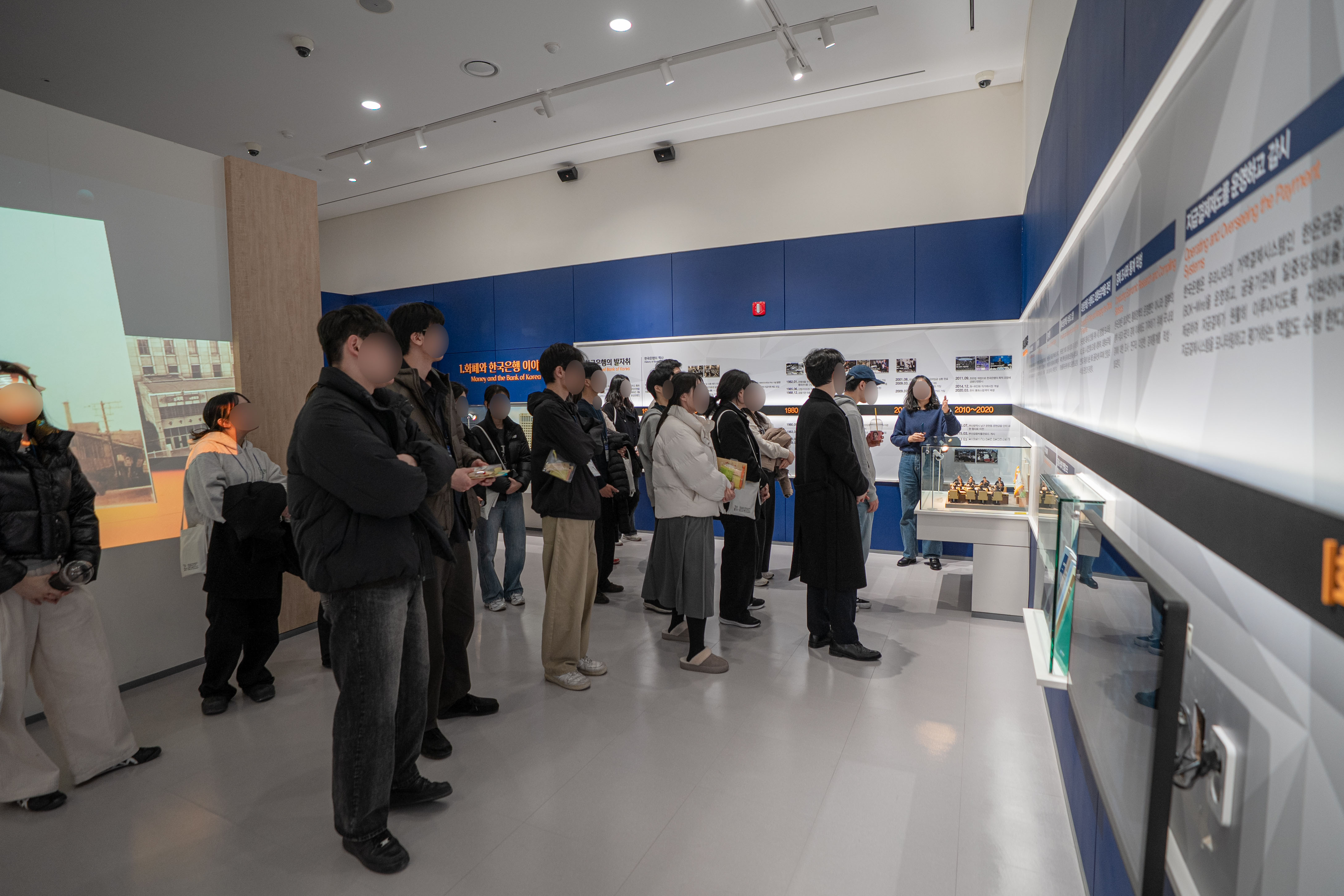 안녕하세요. 부산금융박물관로드입니다. 2026년 2월 4일(수) 프로그램에는 부산대학교 라이즈사업단 프로그램을 통해 부산대 3~4학년 학생들이 참여했습니다. [부산은행 금융역사관 투어 모습]